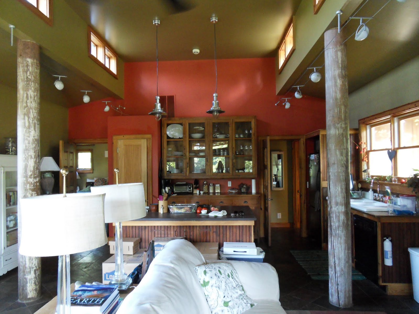 one of the things that sold us on this cabin is the amount of light that pours in through the big windows - my favorite being the windows by the kitchen sink [as seen in picture 3]... i don't think washing dishes could be more pleasant! you can sort of see one of our remaining sets of unpacked boxes - we're on an unintentional unpacking hiatus, which has meant we've been able to enjoy settling in and living here.